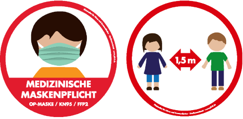 - Für Kinder zwischen 6und 14 Jahren genügt eine einfache Mund-Nase-Bedeckung.